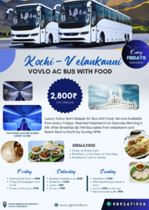 കൊച്ചി – വേളാങ്കണ്ണി കേരള ഭക്ഷണത്തോടുകൂടിയ ആഡംബര വോൾവോ എസി സെമി സ്ലീപ്പർ ബസ് പാക്കേജ്